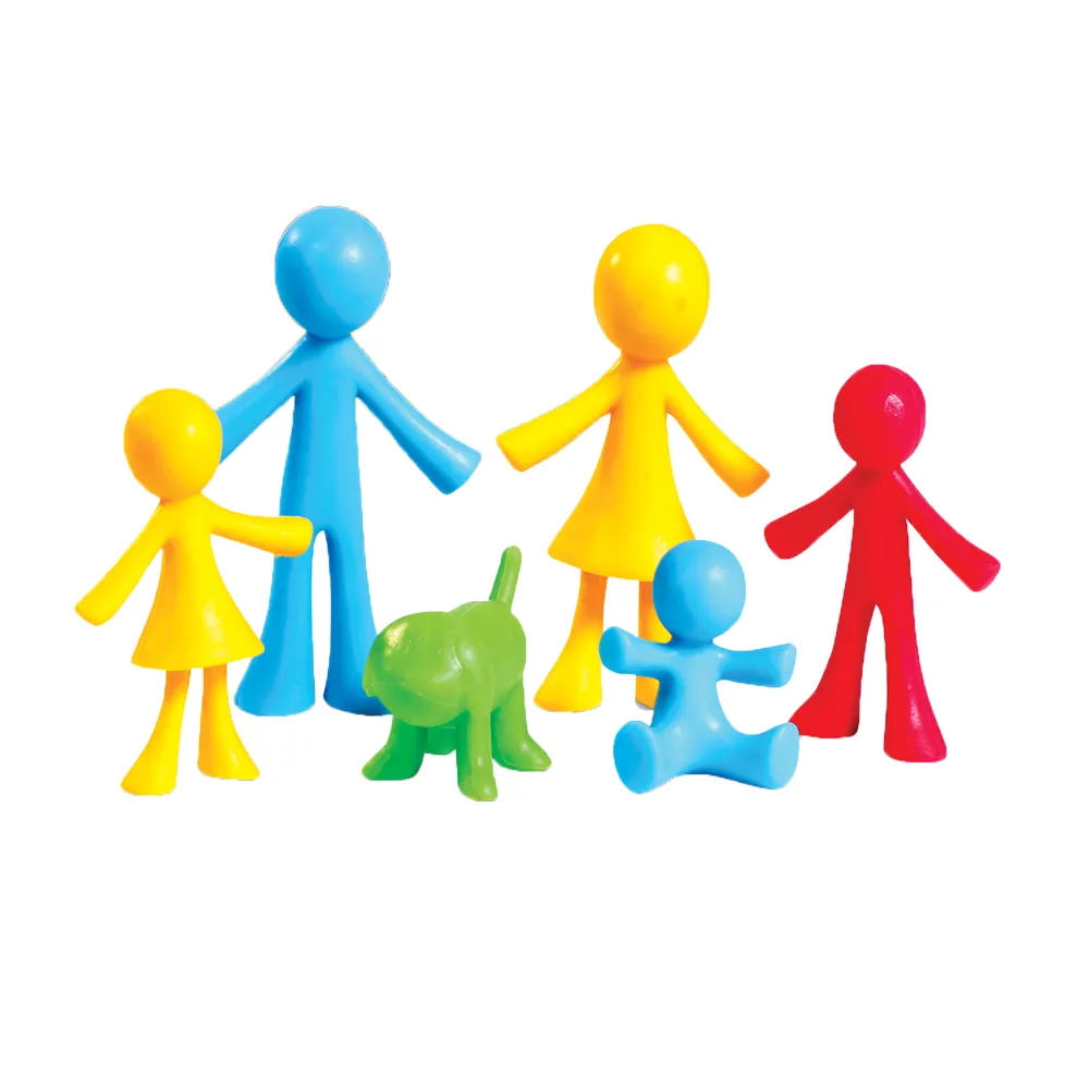 Posen indeholder 24 figurer (mor, far, søster, bror, baby og husdyr) i seks forskellige farver (rød, gul, grøn, blå, lilla og orange).