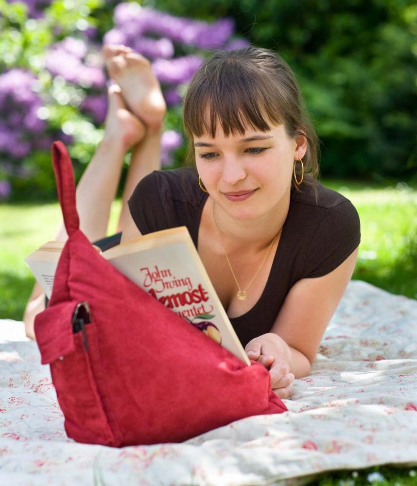 The Book Seat™ har en praktisk lomme på bagsiden til læsebriller, mobiltelefon eller til en hyggelig læsesnack.
